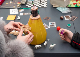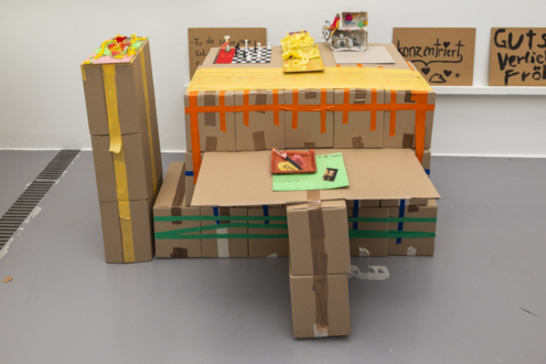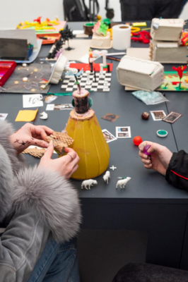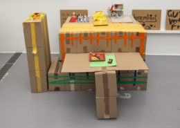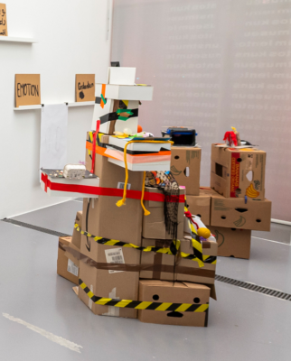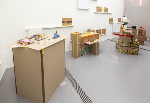 Modelle wachsender Räume wurden mit Kunstwerken der Austellung in Beziehung gebracht und auf selbst gebauten Podesten im Zimmer der Austellung Mädchen*sein!? präsentiert.