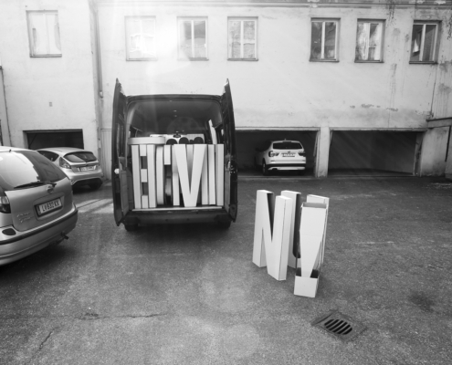 Folgeprojekt 2014 – 2017: Temporäre Installation des Schrift-Objektes an Orten von KooperationspartnerInnen u.a. in Wesenufer