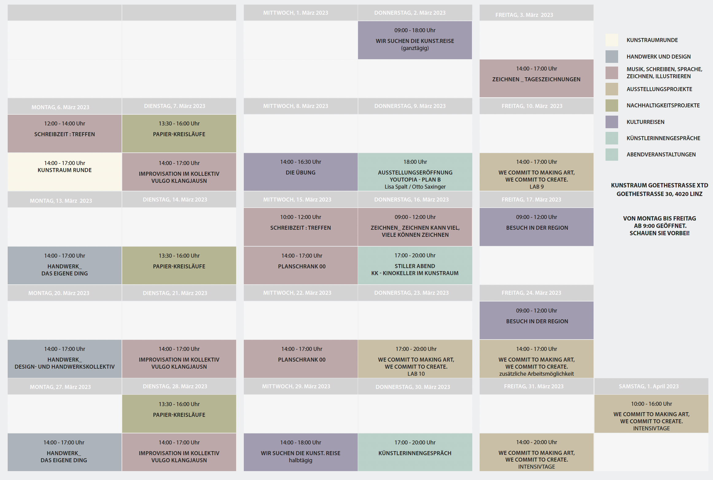Hier finden Sie alle öffentlichen Veranstaltungen des KunstRaum Goethestrasse xtd.